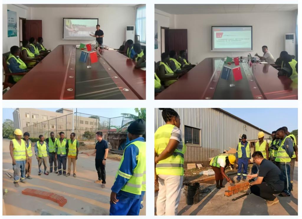 揭牌仪式后,我校教师解朋、郑志浩、赵欣荣迅速开展培训工作,分别围绕建筑工程识图、施工工艺与规范解析、日常中文交流三大主题,为赞比亚中资企业员工授课。授课过程中,教师结合当地实际工作场景,以生动易懂的语言讲解专业知识,同步开展现场演示并让学员实际操作,确保学员能快速理解知识并应用于实践。