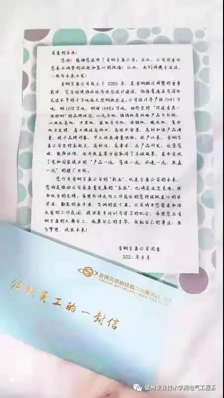8月1日,我校电气工程系2021届毕业生张岩、杨熙文等7名同学前往首钢京唐钢铁联合有限责任公司入职报到,成为企业的正式员工,开启了人生的新征程,也开启了服务我国钢铁产业竞争力提升的新征程。